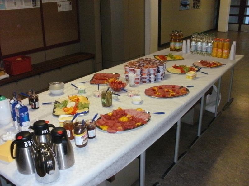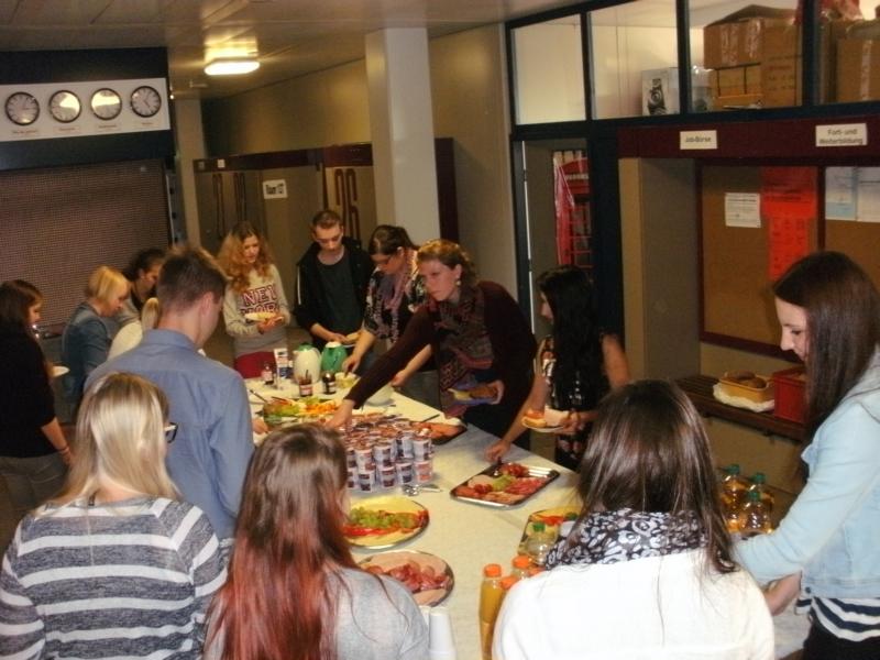Die zweite große Überraschung wartete eine Woche später auf die Auszubildenden. Der Förderverein des Tourismusbereichs der BBS 14, Hannover e. V. lud alle neuen Schülerinnen und Schüler zu einem Kennlern-Frühstück in den Klassenräumen ein. Die Kolleginnen und Kollegen des Bereichs hatten ein umfangreiches Buffet vorbereitet, das die Möglichkeit zum „Satt-Essen“ bot. Diese Gelegenheit wurde von den Auszubildenden dankend angenommen. So war auch der Start in den ersten richtigen Schultag ein gelungener Start.